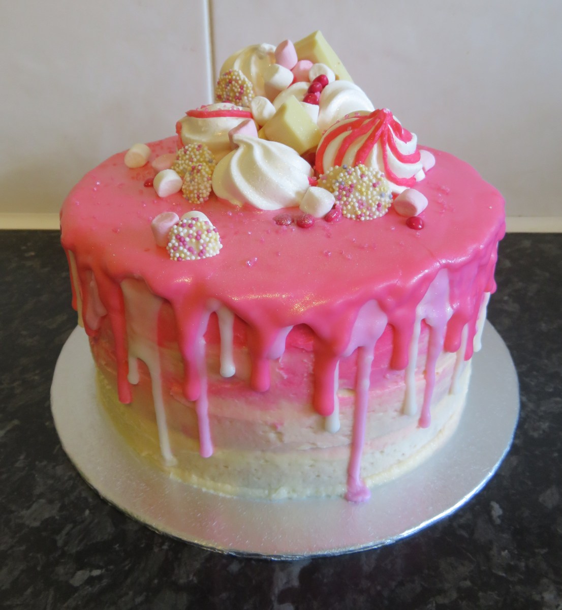 Pink Ombre Drip Cake